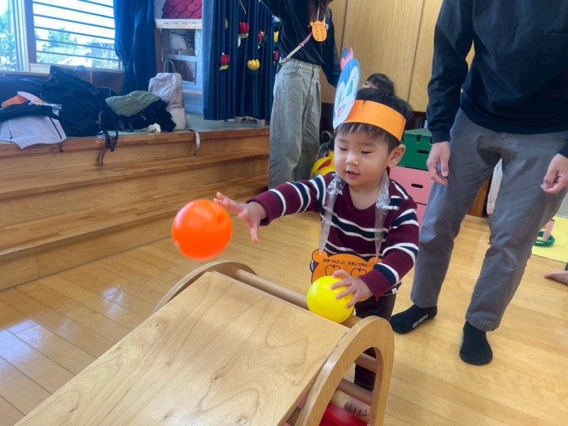 10月30日にいっしょにあそぼう会を開催しました!今回はお祭りごっこをしました!お母さんと一緒にお面を作ってから、ヨーヨー釣り、魚釣り、輪投げ、ボーリング、屋台の5つのコーナーを回って遊びましたよ🎶屋台のかき氷やたこ焼きを買いに行ったり、「つれた〜!」と大きなお魚を釣って楽しそうに遊ぶ姿が見られました^ ^次回は11/20(木)10時〜 リトミックを予定しています♪