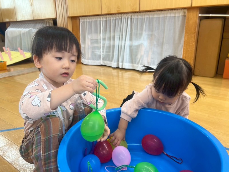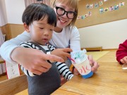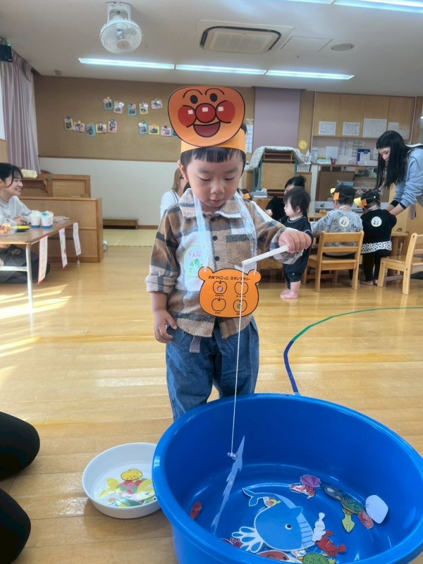 10月30日にいっしょにあそぼう会を開催しました!今回はお祭りごっこをしました!お母さんと一緒にお面を作ってから、ヨーヨー釣り、魚釣り、輪投げ、ボーリング、屋台の5つのコーナーを回って遊びましたよ🎶屋台のかき氷やたこ焼きを買いに行ったり、「つれた〜!」と大きなお魚を釣って楽しそうに遊ぶ姿が見られました^ ^次回は11/20(木)10時〜 リトミックを予定しています♪