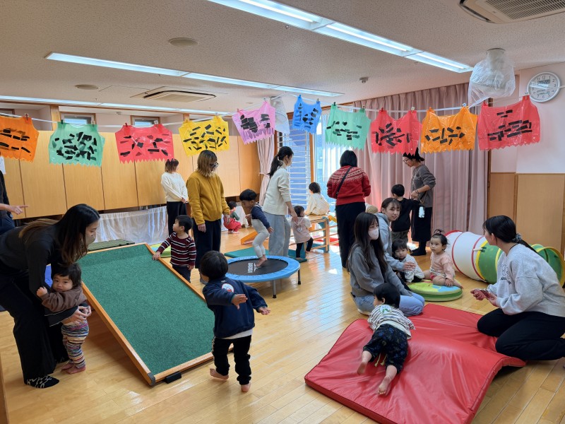 1月の「いっしょにあそぼうの会」を開催しました。今回は、体をたくさん動かして遊べる「運動あそび」を楽しみました♪滑り台やトランポリン、トンネルなどを用意し、子どもたちは思い思いに体を動かしながら、笑顔いっぱいで遊ぶ姿が見られました。初めは少しドキドキしていた子も、保護者の方と一緒に挑戦するうちに、少しずつ慣れて楽しむ様子も見られましたよ。次回は2/10(木)10時からです。コーナー遊びを予定しておりますので、もっとたくさんのおもちゃでめいっぱい楽しんでもらえたらなと思います!!⭐︎